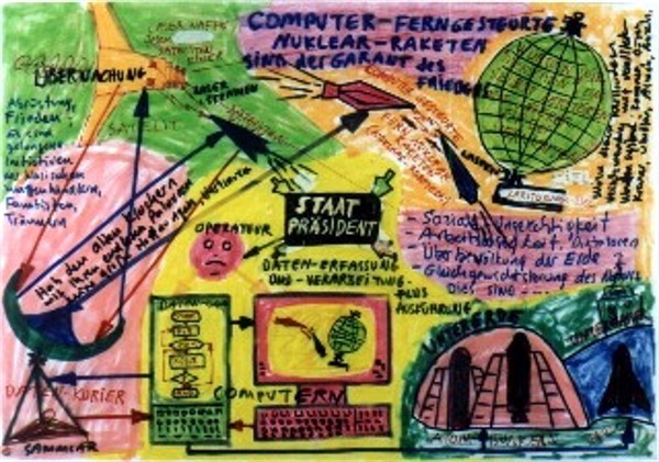 resim sergisini izleyenlere alternatifler sunma yaninda, mesajlar iletme, düsünmege