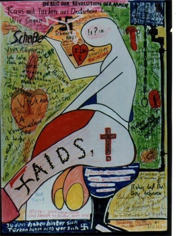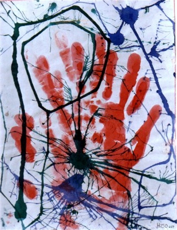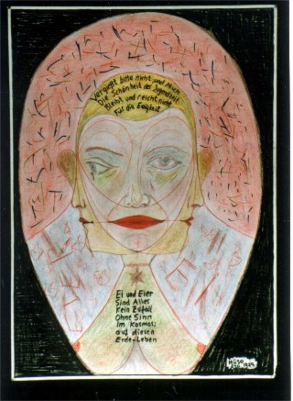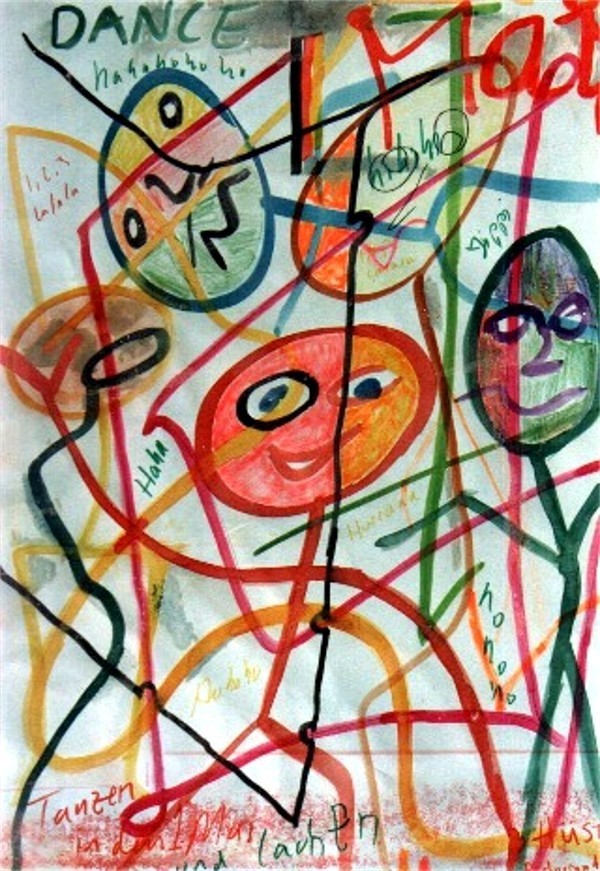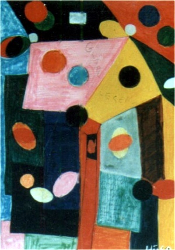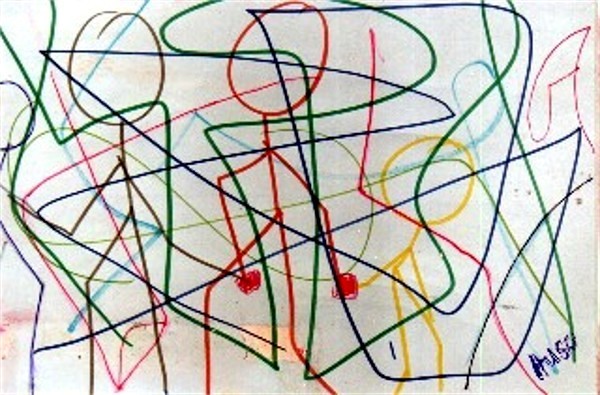 Burada da serbest figürler ve karalama, boylama teknigi islenmistir. Kuru